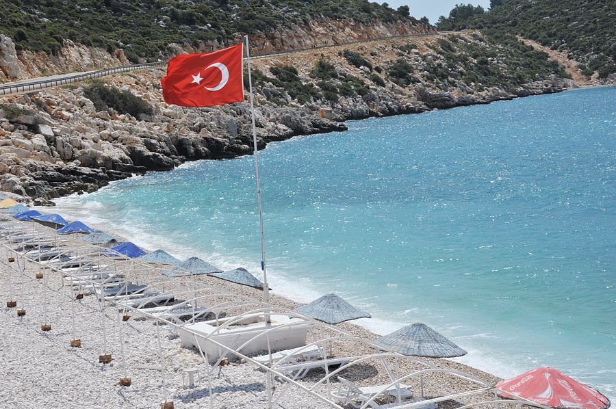 ケコワ島に行くには地中海沿いをバスで3時間、途中は海水浴場が一杯