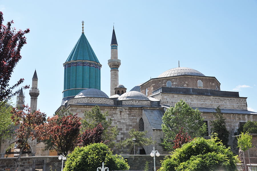 ぐるぐる回る宗教の修行場だったメブラーナ博物館、青いタイルの尖塔が美しい。